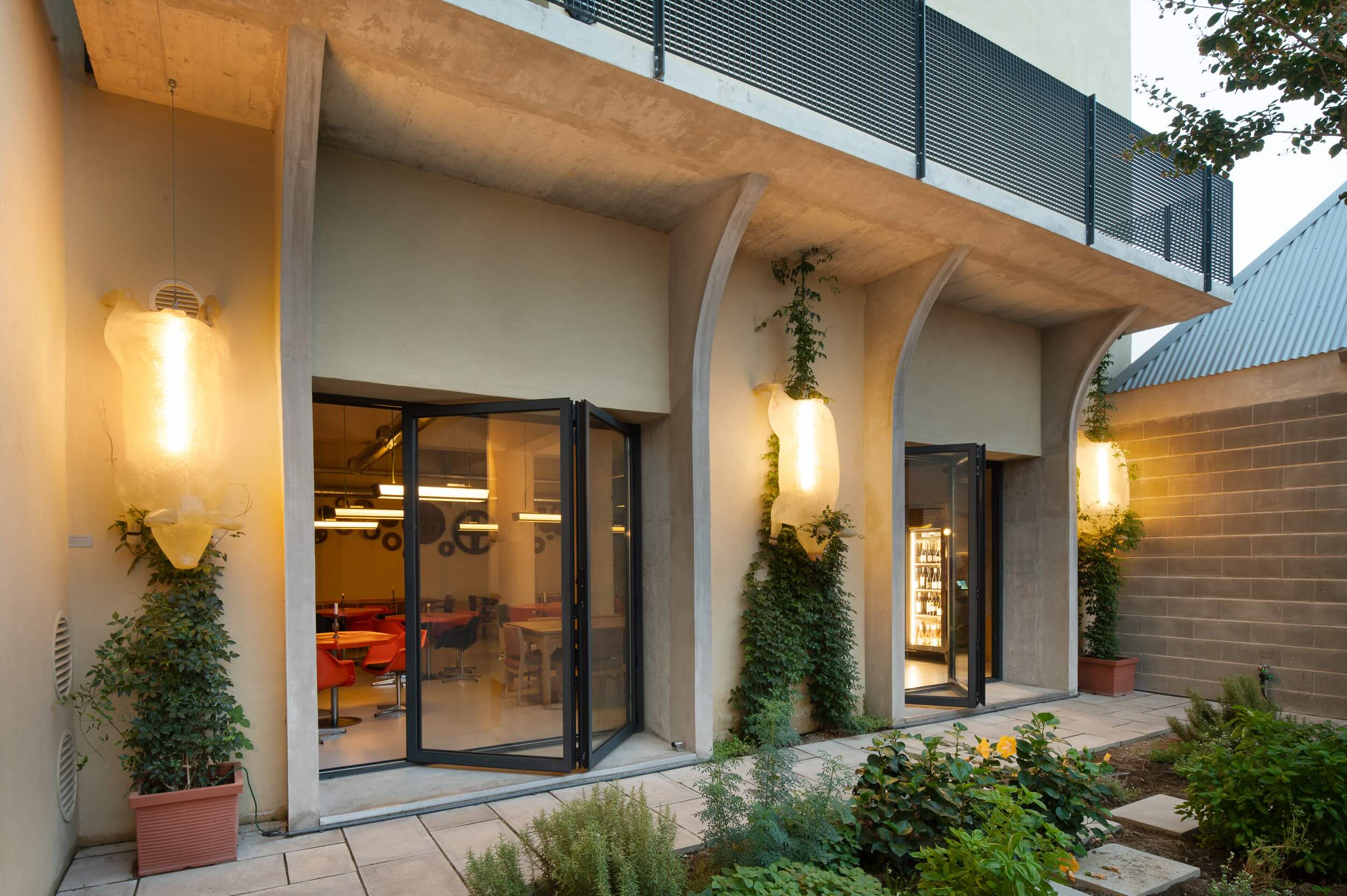 A esplanada ao ar livre, sombreada e iluminada por uma delicada gambiarra de luz suave, cria um ambiente acolhedor e encantador, perfeito para desfrutar de um petisco ou uma bebida ao longo do dia.